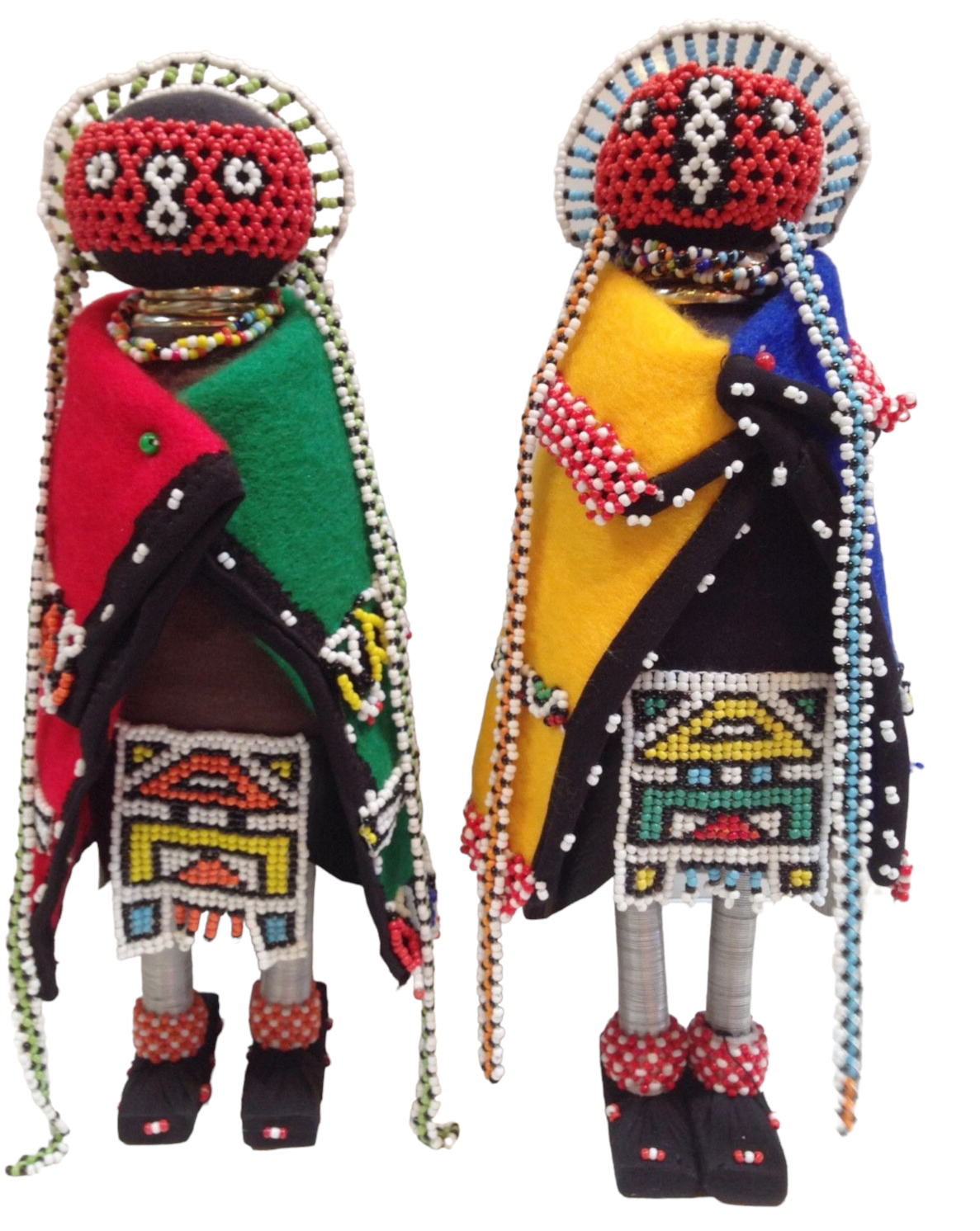 Materials: Fabric, glass, metal etc. The Ndebele women of Southern Africa make various different types of these dolls, which symbolise different stages of a woman’s life, and are intended to bring her good fortune in her various roles.